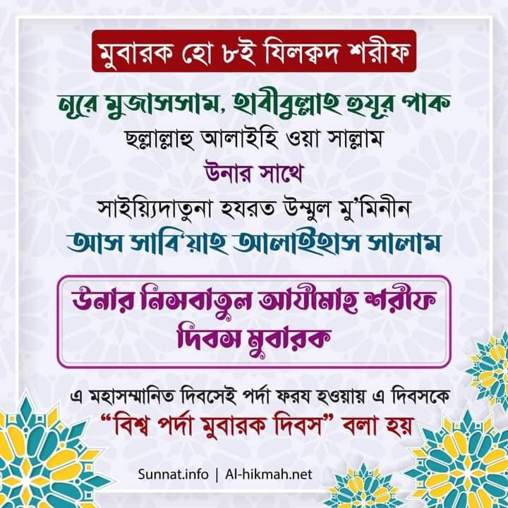 রহমাতুল্লিল ‘আলামীন, ছাহিবু সাইয়্যিদি সাইয়্যিদিল আ’ইয়াদ শরীফ, ইমামুল আইম্মাহ্, মুজাদ্দিদুয যামান, কুতুবুল আলম, মুহইউস সুন্নাহ, মাহিউল বিদয়াহ, গাউছুল আ’যম, আযীযুয যামান, ক্বইউমুজ জামান, আল জাব্বারিউল আউওয়াল, আল ক্বউইউল আউওয়াল, আস সাফফাহ, হাবীবুল্লাহ, আহলু বাইতি রসূলিল্লাহ ছল্লাল্লাহু আলাইহি ওয়া সাল্লাম, মাওলানা মামদূহ মুর্শিদ ক্বিবলা সাইয়্যিদুনা হযরত সুলত্বানুন নাছীর আলাইহিস সালাম তিনি বলেন, মহান আল্লাহ পাক তিনি মহাসম্মানিত ও মহাপবিত্র হযরত আহলু ব বাকি অংশ পড়ুন...