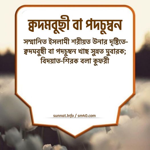 অর্থ: আমরা যখন মদীনা শরীফ উনার মধ্যে আগমন মুবারক করতাম, তখন তাড়াতাড়ি করে নিজেদের সওয়ারী থেকে নেমে নূরে মুজাসসাম হাবীবুল্লাহ হুযূর পাক ছল্লাল্লাহু আলাইহি ওয়া সাল্লাম উনার নূরুল মাগফিরাত মুবারকে (পবিত্র হাত মুবারকে) এবং নূরুদ দারাজাত মুবারকে (পবিত্র ক্বদম মুবারকে) বুছা দিতাম। সুবহানাল্লাহ! (আবূ দাউদ শরীফ, মু’জামুছ ছাহাবাহ্, আস সুনানুল কুবরা লিল বাইহাক্বী, শরহুস সুন্নাহ্, শু‘আবুল ঈমান, ইত্যাদি)