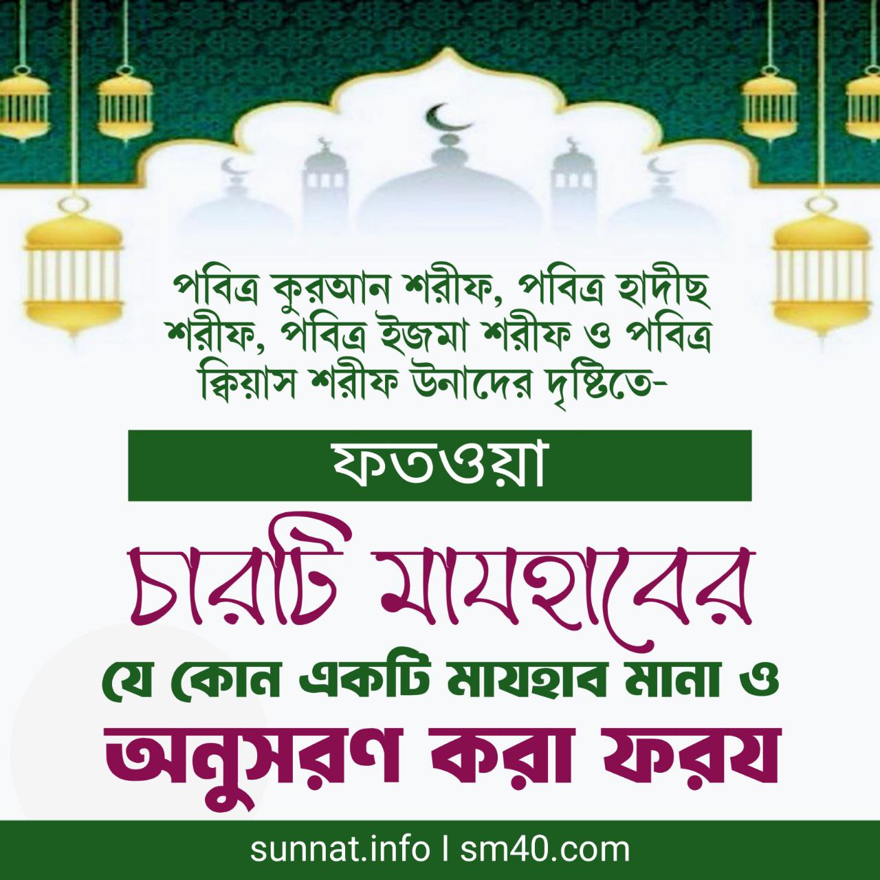 উল্লেখ্য, কুরআন শরীফ, হাদীছ শরীফ, ইজমা ও ক্বিয়াস অনুযায়ী বর্তমানে মাযহাব চারটা। যথা: হানাফী, মালিকী, শাফিয়ী ও হাম্বলী।