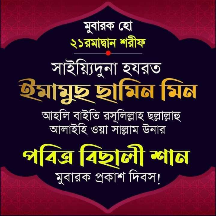 অর্থ: “মহাসম্মানিত ও মহাপবিত্র উম্মুল মু’মিনীন সাইয়্যিদাতুনা হযরত আল ‘আশিরহ্ আলাইহাস সালাম তিনি একবার মহাসম্মানিত স্বপ্ন মুবারক-এ দেখলেন যে আকাশের চাঁদখানা উনার মহাসম্মানিত ও মহাপবিত্র নূরুল আযহার মুবারক-এ (মহাসম্মানিত ও মহাপবিত্র কোল মুবারক-এ) সম্মানিত তাশরীফ মুবারক নিয়েছেন। সুবহানাল্লাহ! অন্য বর্ণনা রয়েছেন- তিনি মহাসম্মানিত স্বপ্ন মুবারক-এ দেখেছেন আসমানের সূর্যখানা উনার মহাসম্মানিত ও মহা বাকি অংশ পড়ুন...