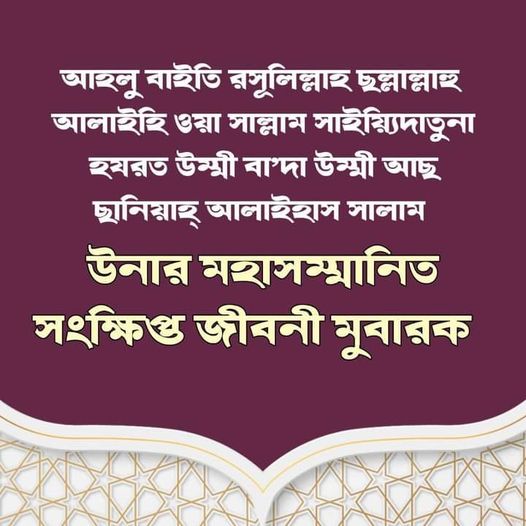 সাইয়্যিদাতুনা হযরত উম্মী বা’দা উম্মী আছ ছানিয়াহ্ আলাইহাস সালাম উনার মহাসম্মানিত ও মহাপবিত্র পরিচিতি মুবারক