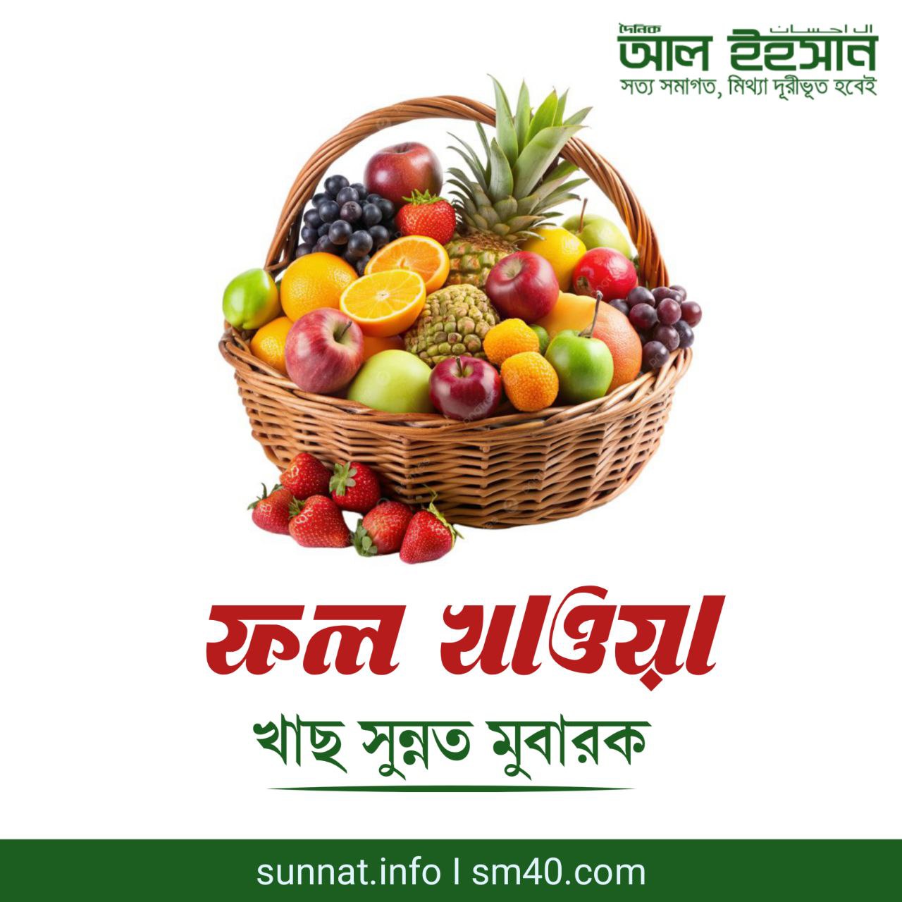 নূরে মুজাসসাম হাবীবুল্লাহ হুযূর পাক ছল্লাল্লাহু আলাইহি ওয়া সাল্লাম তিনি নিজে ফল গ্রহণ (আহার মুবারক) করেছেন এবং তিনি অত্যন্ত পছন্দ মুবারক করতেন। এমনকি তিনি হযরত ছাহবায়ে কিরাম রদ্বিয়াল্লাহু তায়ালা আনহুম উনাদেরকেও ফল খাওয়ার জন্য আদেশ মুবারক করেছেন। অর্থাৎ ফল খাওয়া খাছ সুন্নত মুবারক।