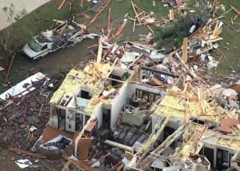 আকস্মিক টর্নেডোর আঘাতে আম্রিকার ওকলাহোমো। বিধ্বস্ত বহু ঘর-বাড়ি।