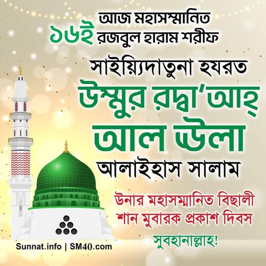 আজ আযীমুশ শান মহাসম্মানিত ও মহাপবিত্র ২৭শে রজবুল হারাম শরীফ- আহলু বাইতি রসূলিল্লাহ ছল্লাল্লাহু আলাইহি ওয়া সাল্লাম, ক্বায়িম মাক্বামে হাবীবুল্লাহ ছল্লাল্লাহু আলাইহি ওয়া সাল্লাম, রহমাতুল্লিল আলামীন মামদূহ মুর্শিদ ক্বিবলা সাইয়্যিদুনা হযরত সুলত্বানুন নাছীর আলাইহিস সালাম উনার মহাসম্মানিত ও মহাপবিত্র রগ্বাইব শরীফ