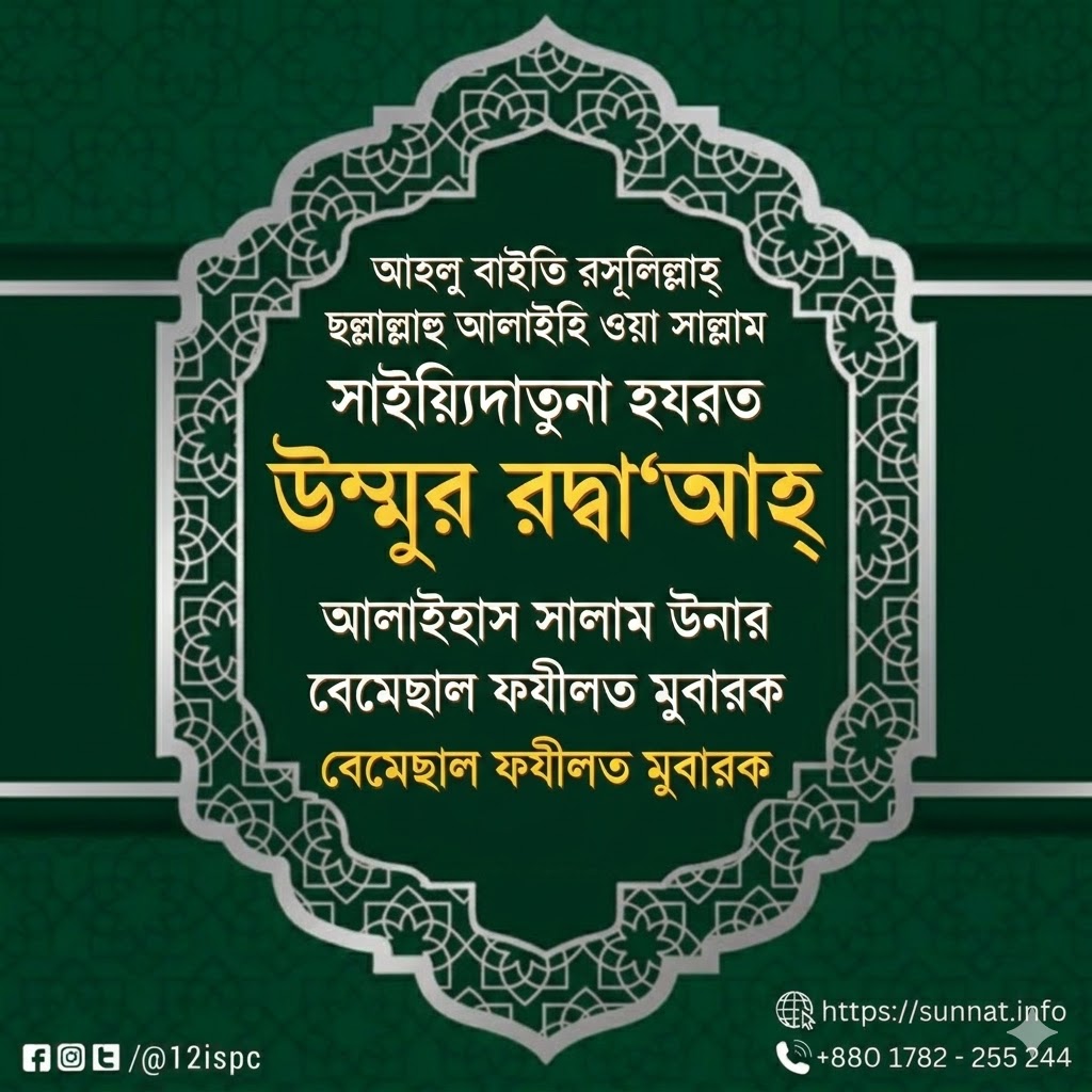 আহলু বাইতি রসূলিল্লাহ ছল্লাল্লাহু আলাইহি ওয়া সাল্লাম সাইয়্যিদাতুনা হযরত উম্মুর রদ্বা‘আহ্ আল ঊলা আলাইহাস সালাম উনার বেমেছাল ফযীলত মুবারক
