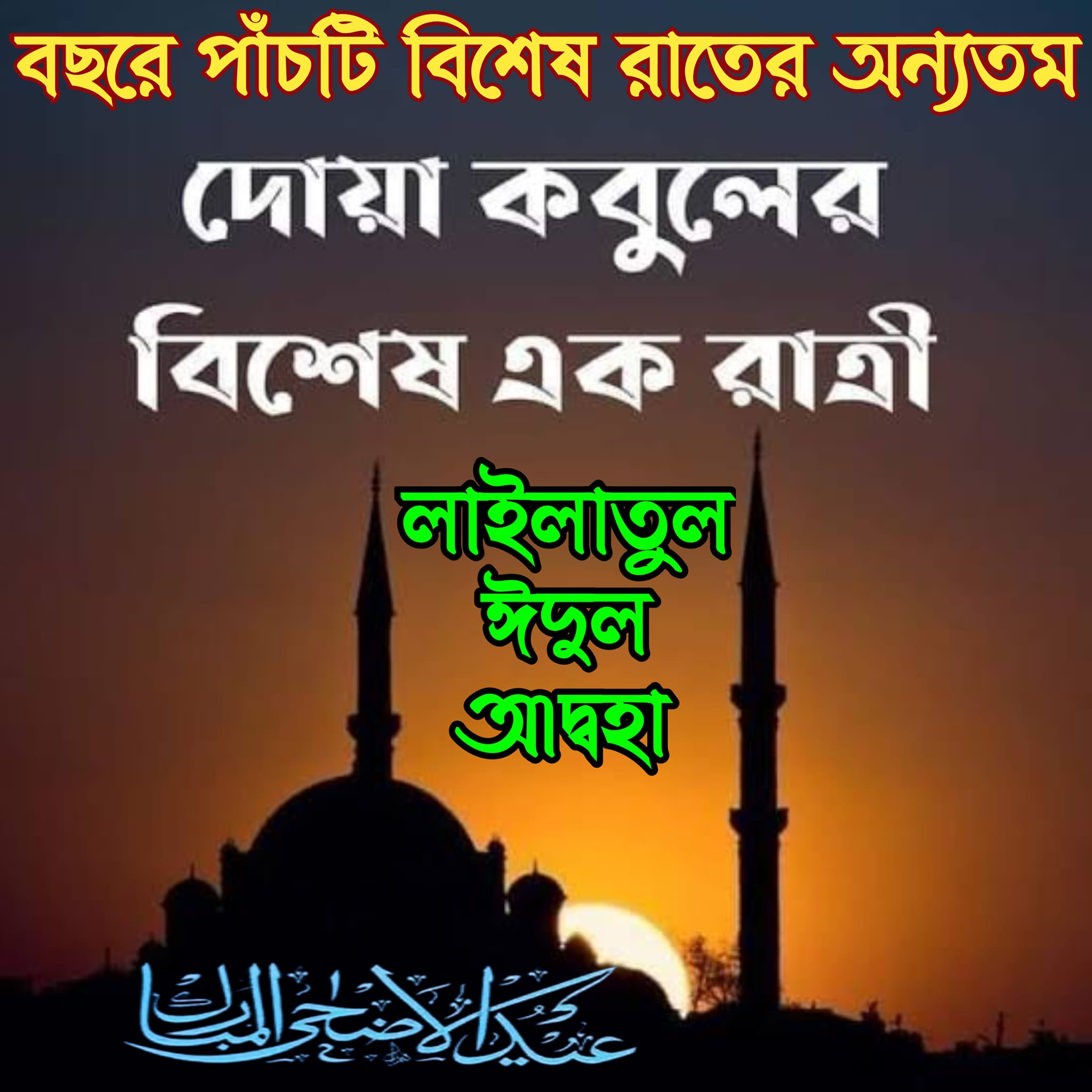 পবিত্র ঈদুল আদ্বহা উনার রাতে দোয়া সুনিশ্চিতভাবে ক্ববুল হয়।
