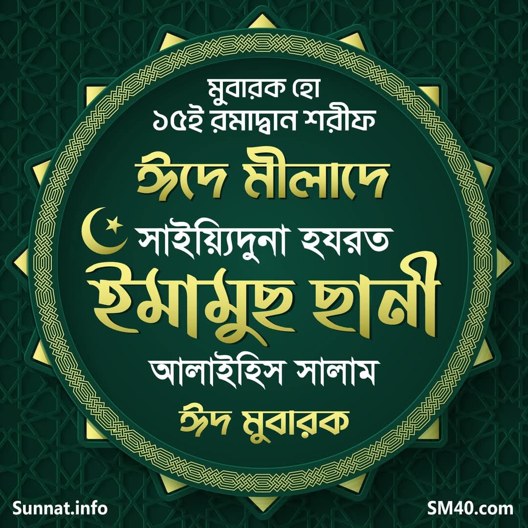 মুবারক হো ১৫ই রমাদ্বান শরীফ! তথা পবিত্র দ্বীন ইসলাম উনার সম্মানিত পঞ্চম খলীফা, সাইয়্যিদুশ শুহাদা, সাইয়্যিদু শাবাবি আহলিল জান্নাহ, আহলু বাইতিন্ নাবিইয়ি, আওলাদু রসূলিল্লাহ, সাইয়্যিদুনা হযরত ইমামুছ ছানী মিন আহলি বাইতি রসূলিল্লাহ ছল্লাল্লাহু আলাইহি ওয়া সাল্লাম উনার মহিমান্বিত বিলাদতী শান মুবারক প্রকাশ করার সুমহান দিবস।