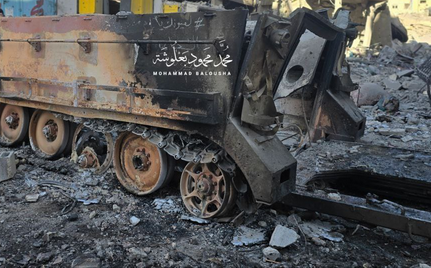 যোদ্ধাদের হামলার পর পুড়ে অঙার হওয়া দখলদারদের সামরিক যান