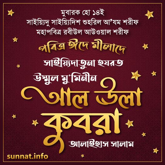 অর্থাৎ সেই মহাসম্মানিত, মহামর্যাদাবান, সুমহান, অশেষ বরকতময় ও বেমেছাল ফযীলতপূর্ণ সাইয়্যিদু সাইয়্যিদিল আ’দাদ শরীফ অর্থাৎ মহাসম্মানিত ও মহাপবিত্র ১২ই রবীউল আউওয়াল শরীফই হচ্ছেন- কুল-কায়িনাতের জন্য সর্বশ্রেষ্ঠ ঈদ বাকি অংশ পড়ুন...