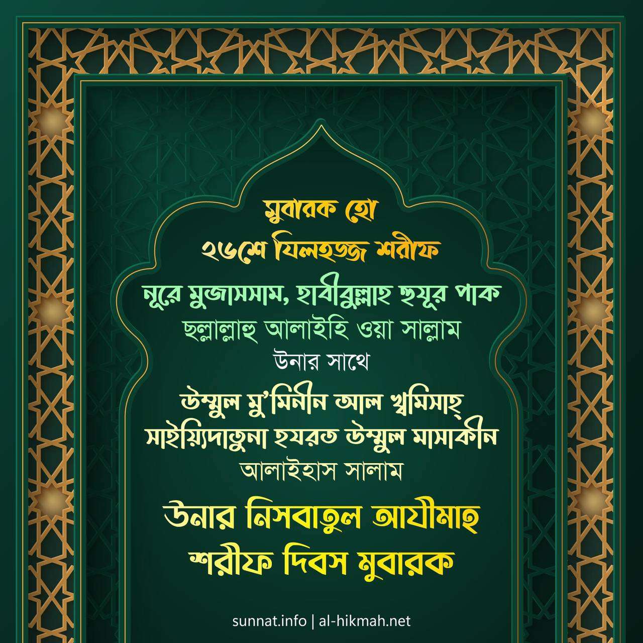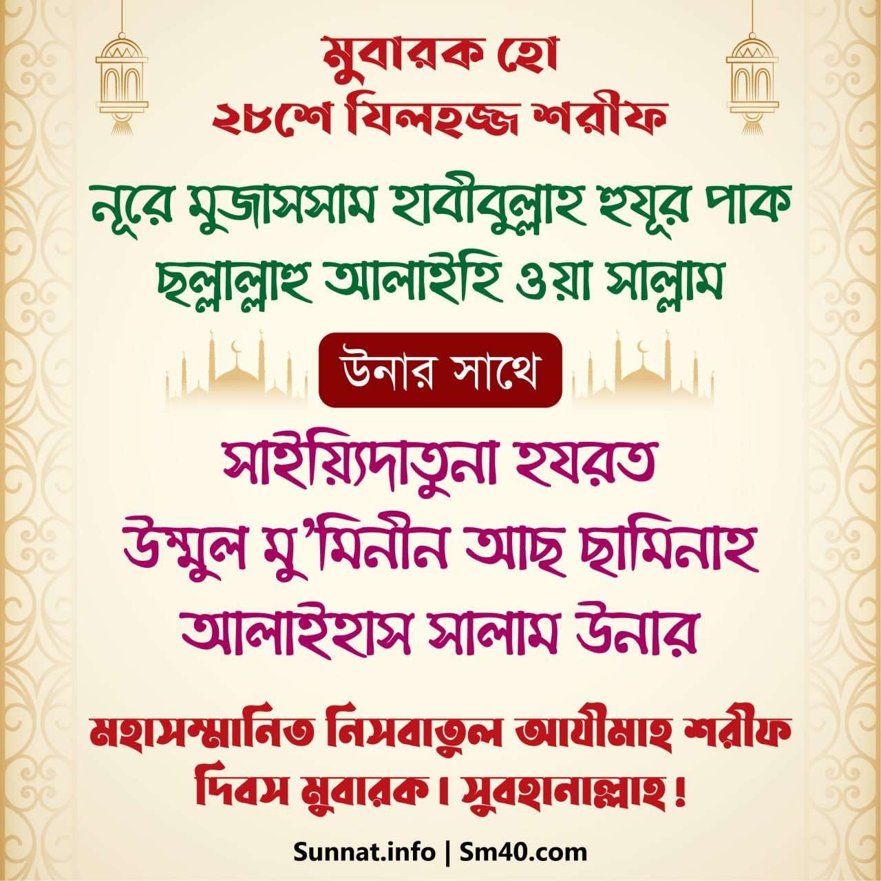 রহমাতুল্লিল ‘আলামীন, ছাহিবু সাইয়্যিদি সাইয়্যিদিল আ’ইয়াদ শরীফ, ইমামুল আইম্মাহ্, মুজাদ্দিদুয যামান, কুতুবুল আলম, মুহইউস সুন্নাহ, মাহিউল বিদয়াহ, গাউছুল আ’যম, আযীযুয যামান, ক্বইউমুয যামান, আল জাব্বারিউল আউওয়াল, আল ক্বউইউল আউওয়াল, আস সাফফাহ, হাবীবুল্লাহ, আহলু বাইতি রসূলিল্লাহ ছল্লাল্লাহু আলাইহি ওয়া সাল্লাম, মাওলানা মামদূহ মুর্শিদ ক্বিবলা সাইয়্যিদুনা হযরত সুলত্বানুন নাছীর আলাইহিস সালাম তিনি বলেন, হযরত উম্মাহাতুল মুমিনীন আলাইহিন্নাস সালাম উনারা ছিলেন মোট ১৩ জন। সুবহানাল্লাহ! সাইয়্যিদুল মুরসালীন, ইমামুল মুরসালীন, খ্বাতামুন না বাকি অংশ পড়ুন...