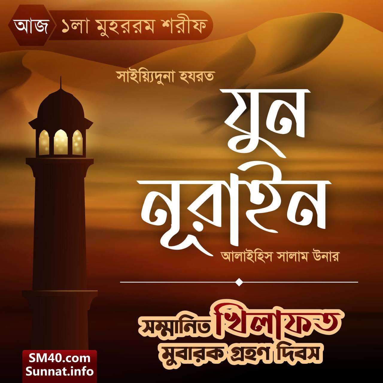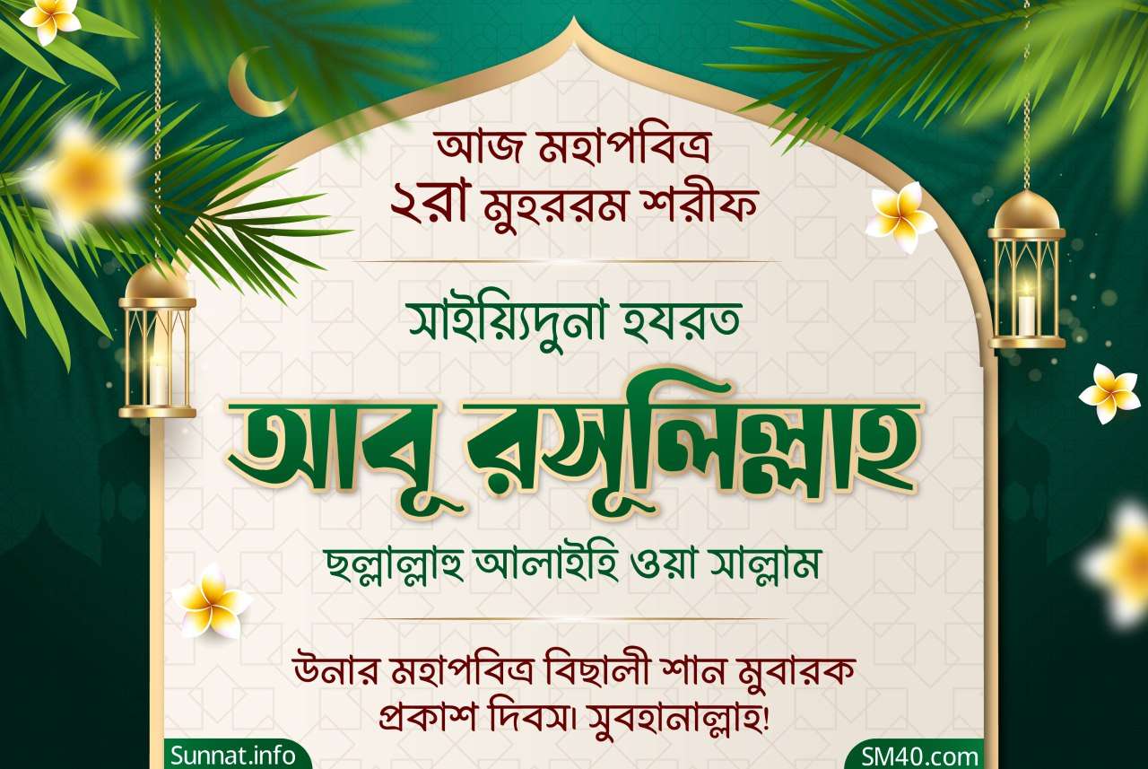 রহমাতুল্লিল ‘আলামীন, ছাহিবু সাইয়্যিদি সাইয়্যিদিল আ’ইয়াদ শরীফ, ইমামুল আইম্মাহ্, মুজাদ্দিদুয যামান, কুতুবুল আলম, মুহইউস সুন্নাহ, মাহিউল বিদয়াহ, গাউছুল আ’যম, আযীযুয যামান, ক্বইউমুয যামান, আল জাব্বারিউল আউওয়াল, আল ক্বউইউল আউওয়াল, আস সাফফাহ, হাবীবুল্লাহ, আহলু বাইতি রসূলিল্লাহ ছল্লাল্লাহু আলাইহি ওয়া সাল্লাম, মাওলানা মামদূহ মুর্শিদ ক্বিবলা সাইয়্যিদুনা হযরত সুলত্বানুন নাছীর আলাইহিস সালাম তিনি বলেন, আজ সুমহান ঐতিহাসিক পবিত্র পহেলা মুহররমুল হারাম শরীফ; যা খলীফায়ে ছালিছ, আমীরুল মু’মিনীন সাইয়্যিদুনা হযরত যুন নূরাইন আলাইহিস সালাম উন বাকি অংশ পড়ুন...