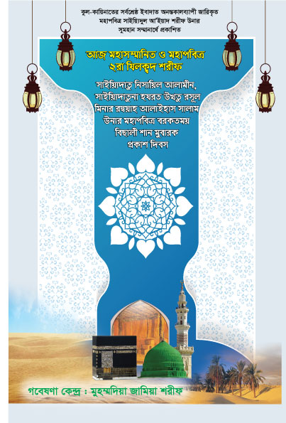 সব প্রশংসা মুবারক খালিক্ব মালিক রব মহান আল্লাহ পাক উনার জন্য; যিনি সকল সার্বভৌম ক্ষমতার মালিক। সাইয়্যিদুল মুরসালীন, ইমামুল মুরসালীন, নবী আলাইহিমুস সালাম উনাদের নবী, রসূল আলাইহিমুস সালাম উনাদের রসূল, নূরে মুজাসসাম হাবীবুল্লাহ হুযূর পাক ছল্লাল্লাহু আলাইহি ওয়া সাল্লাম উনার প্রতি অফুরন্ত দুরূদ শরীফ ও সালাম মুবারক।