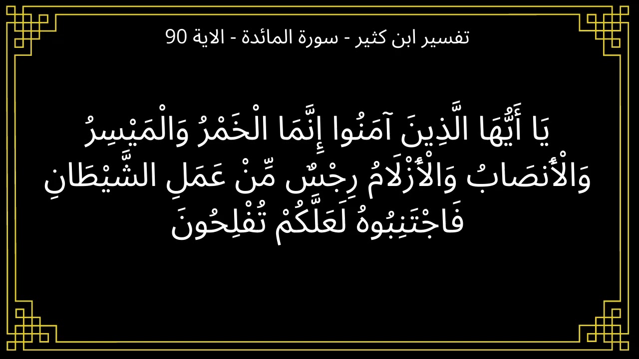 يَا أَيُّهَا الَّذِيْنَ اٰمَنُوْا اِنَّـمَا الْـخَمْرُ وَالْمَيْسِرُ وَالْأَنْصَابُ وَالْأَزْلاَمُ رِجْسٌ مِّنْ عَمَلِ الشَّيْطَانِ فَاجْتَنِبُوْهُ لَعَلَّكُمْ تُفْلِحُوْنَ