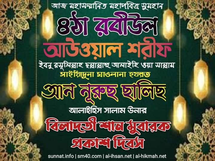 পবিত্র হাদীছ শরীফ উনার মধ্যে আরো বর্ণিত রয়েছে, “হযরত যায়িদ ইবনে আরকাম রদ্বিয়াল্লাহু তায়ালা আনহু তিনি বলেন, নিশ্চয়ই নূরে মুজাসসাম হাবীবুল্লাহ হুযূর পাক ছল্লাল্লাহু আলাইহি ওয়া সাল্লাম তিনি সাইয়্যিদুনা হযরত ইমা বাকি অংশ পড়ুন...