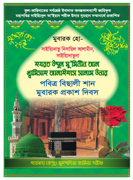 সব প্রশংসা মুবারক খালিক্ব মালিক রব মহান আল্লাহ পাক উনার জন্য; যিনি সকল সার্বভৌম ক্ষমতার মালিক। সাইয়্যিদুল মুরসালীন, ইমামুল মুরসালীন, নবী আলাইহিমুস সালাম উনাদের নবী, রসূল আলাইহিমুস সালাম উনাদের রসূল, নূরে মুজাসসাম, হাবীবুল্লাহ হুযূর পাক ছল্লাল্লাহু আলাইহি ওয়া সাল্লাম উনার প্রতি অফুরন্ত দুরূদ শরীফ ও সালাম মুবারক।