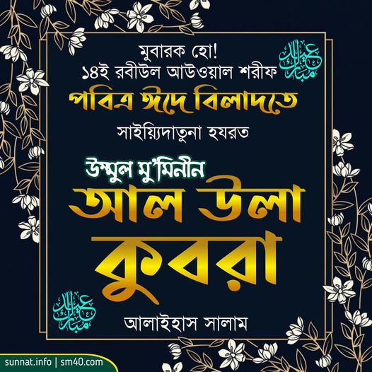 আজ মহামহিমান্বিত সাইয়্যিদুশ শুহূরিল আ’যম শরীফ মহাসম্মানিত ও মহাপবিত্র পবিত্র ৭ই রবীউল আউয়াল শরীফ। সাইয়্যিদাতুন নিসা, আফদ্বালুন নিসা বা’দা হযরত উম্মাহাতিল মু’মিনীন আলাইহিন্নাস সালাম, উম্মুল উমাম, সাইয়্যিদাতুনা বাকি অংশ পড়ুন...
