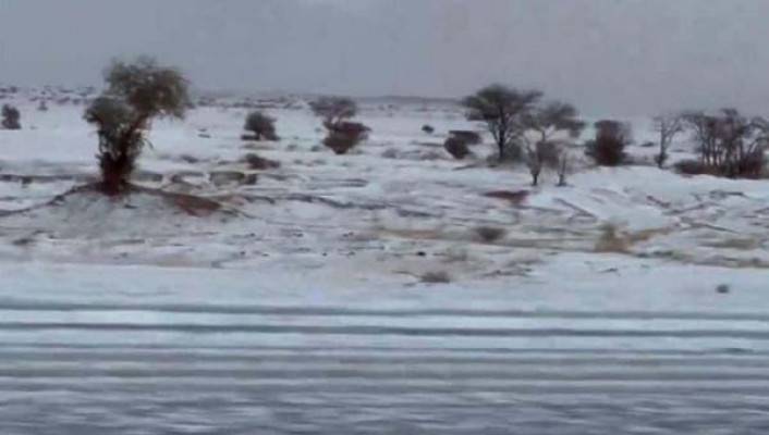 সৌদি আরবের আফিফ মরুভূমিতে হঠাৎ করে তুষারপাত হয়েছে। গত জুমুয়াবার (১৫ মার্চ) রাতে সেখানে বৃষ্টি ও শিলা পড়ে। এরপর অপ্রত্যাশিতভাবে মরুভূমিটি তুষারের চাদরে ঢাকা পড়ে।