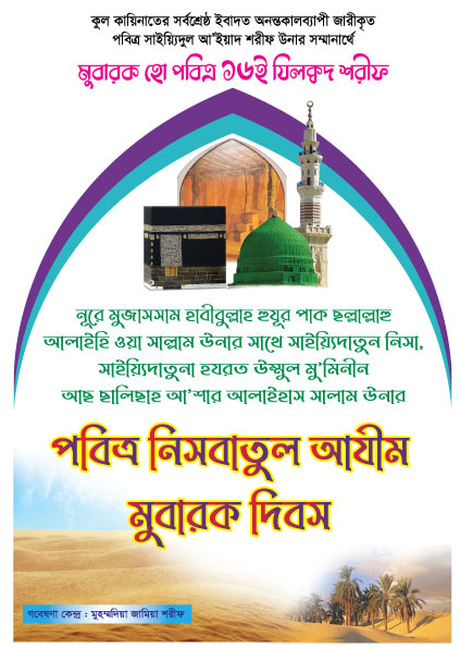 রহমাতুল্লিল ‘আলামীন, ছাহিবু সাইয়্যিদি সাইয়্যিদিল আ’ইয়াদ শরীফ, ইমামুল আইম্মাহ্, মুজাদ্দিদুয যামান, কুতুবুল আলম, মুহইউস সুন্নাহ, মাহিউল বিদয়াহ, গাউছুল আ’যম, আযীযুয যামান, ক্বইউমুয যামান, আল জাব্বারিউল আউওয়াল, আল ক্বউইউল আউওয়াল, আস সাফফাহ, হাবীবুল্লাহ, আহলু বাইতি রসূলিল্লাহ ছল্লাল্লাহু আলাইহি ওয়া সাল্লাম, মাওলানা মামদূহ মুর্শিদ ক্বিবলা সাইয়্যিদুনা হযরত সুলত্বানুন নাছীর আলাইহিস সালাম তিনি বলেন, মহান আল্লাহ পাক তিনি পবিত্র সুরা ইনশিরাহ শরীফ উনার ৩নং পবিত্র আয়াত শরীফে ইরশাদ মুবারক করেন, “মহাসম্মানিত হাবীব ছল্লাল্লাহু আলাইহি বাকি অংশ পড়ুন...