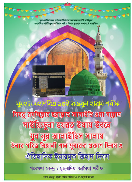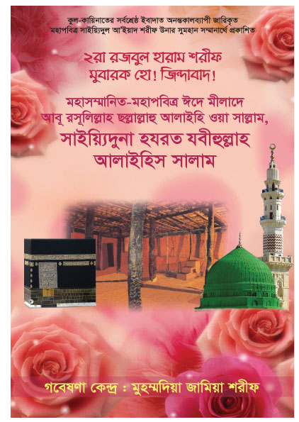 খলীফাতুল্লাহ, খলীফাতু রসূলিল্লাহ, ছাহিবু সাইয়্যিদি সাইয়্যিদিল আ’ইয়াদ শরীফ, আস সাফফাহ, আল জাব্বারিউল আউওয়াল, আল ক্বউইউল আউওয়াল, হাবীবুল্লাহ, মুত্বহ্হার, মুত্বহ্হির, আহলু বাইতি রসূলিল্লাহ ছল্লাল্লাহু আলাইহি ওয়া সাল্লাম, ক্বায়িম মাক্বামে হাবীবুল্লাহ ছল্লাল্লাহু আলাইহি ওয়া সাল্লাম, মাওলানা মামদূহ মুর্শিদ ক্বিবলা সাইয়্যিদুনা হযরত সুলত্বানুন নাছীর আলাইহিস সালাম তিনি বলেন, এই মহাপবিত্র রজবুল হারাম শরীফ উনার পহেলা জুমুয়াবারে আবূ রসূলিল্লাহ ছল্লাল্লাহু আলাইহি ওয়া সাল্লাম সাইয়্যিদুনা হযরত যবীহুল্লাহ আলাইহিস সালাম উনার ও সা বাকি অংশ পড়ুন...