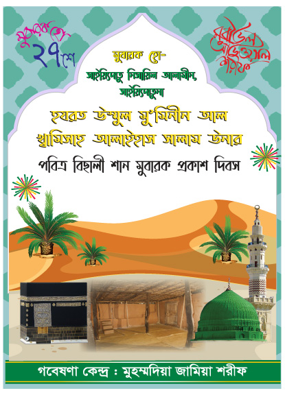 খলীফাতুল্লাহ, খলীফাতু রসূলিল্লাহ, ছাহিবু সাইয়্যিদু সাইয়্যিদিল আ’ইয়াদ শরীফ, আস সাফফাহ, আল জাব্বারিউল আউওয়াল, আল ক্বউইউল আউওয়াল, হাবীবুল্লাহ, মুত্বহ্হার, মুত্বহ্হির, আহলু বাইতি রসূলিল্লাহ ছল্লাল্লাহু আলাইহি ওয়া সাল্লাম, ক্বায়িম মাক্বামে হাবীবুল্লাহ ছল্লাল্লাহু আলাইহি ওয়া সাল্লাম, মাওলানা মামদূহ মুর্শিদ ক্বিবলা সাইয়্যিদুনা হযরত সুলত্বানুন নাছীর আলাইহিস সালাম তিনি বলেন, মহান আল্লাহ পাক তিনি মহাপবিত্র কুরআন শরীফে ‘আইয়ামুল্লাহ’ অর্থাৎ সম্মানিত বিশেষ বিশেষ দিনসমূহের কথা উল্লেখ করেছেন। মহান আল্লাহ পাক তিনি ইরশাদ মুবারক কর বাকি অংশ পড়ুন...