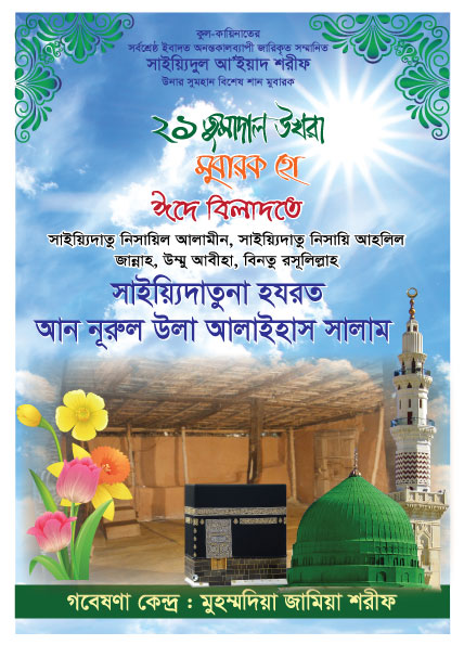 অর্থ: “যে ব্যক্তি আমার মহাসম্মানিত ও মহাপবিত্র বরকতময় বিলাদতী শান মুবারক প্রকাশ উপলক্ষে, মহাসম্মানিত ও মহাপবিত্র সাইয়্যিদু সাইয়্যিদিল আ’ইয়াদ শরীফ উনার সম্মানার্থে এক দিরহাম (রৌপ্য মুদ্রা) খরচ করবেন, তিনি সম্মানিত জান্নাত মুবারক উনার মধ্যে আমার বন্ধু হবেন অর্থাৎ আমার বাকি অংশ পড়ুন...