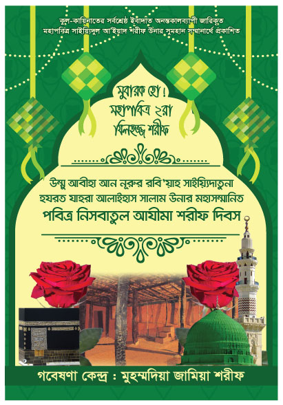 অর্থ: “মহাসম্মানিত ও মহাপবিত্র ঈদে মীলাদে হাবীবুল্লাহ ছল্লাল্লাহু আলাইহি ওয়া সাল্লাম উনার দিন, মহাসম্মানিত ও মহাপবিত্র ‘ফালইয়াফরহূ শরীফ’ সাইয়্যিদুল আ’ইয়াদ শরীফ উনার দিন খলীফাতু রসূলিল্লাহ ছল্লাল্ বাকি অংশ পড়ুন...