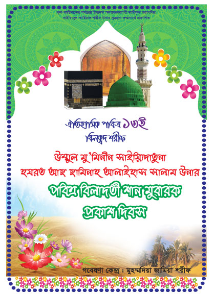 ১৩ জন মহাসম্মানিত ও মহাপবিত্র হযরত উম্মাহাতুল মু’মিনীন আলাইহিন্নাস সালাম উনাদের মধ্যে নূরে মুজাসসাম হাবীবুল্লাহ হুযূর পাক ছল্লাল্লাহু আলাইহি ওয়া সাল্লাম উনার মহাসম্মানিত ও মহাপবিত্র খিদমত মুবারক-এ মহাসম্মানিত ও মহাপবিত্র তাশরীফ মুবারক নেয়ার ধারাবাহিকক্রম মুবারক অনুযায়ী মহাসম্মানিত ও মহাপবিত্র উম্মুল মু’মিনীন সাইয়্যিদাতুনা হযরত আল হাদিয়াহ্ ‘আশার আলাইহাস সালাম তিনি হচ্ছেন- ‘আল হাদিয়াহ্ ‘আশার অর্থাৎ ১১তম’। এজন্য উনাকে ‘মহাসম্মানিত ও মহাপবিত্র উম্মুল মু’মিনীন সাইয়্যিদাতুনা হযরত আল হাদিয়াহ্ ‘আশার আলাইহাস সালাম’ ব বাকি অংশ পড়ুন...