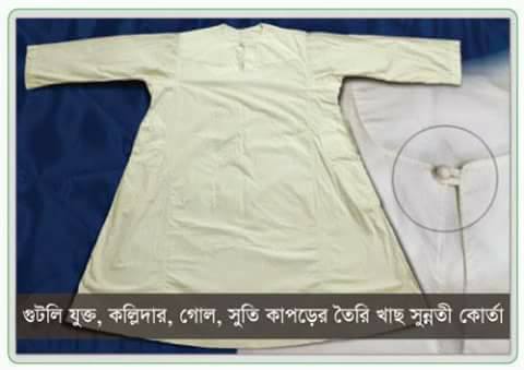 অর্থ: হযরত ইবনে উমর রদ্বিয়াল্লাহু তায়ালা আনহু উনার থেকে বর্ণিত। তিনি বলেন, নূরে মুজাসসাম হাবীবুল্লাহ হুযূর পাক ছল্লাল্লাহু আলাইহি ওয়া সাল্লাম তিনি ইরশাদ মুবারক করেন, লুঙ্গি যেমন নিছফে সাক্ব পর্যন্ত পরিধান করতে হবে, তদ্রুপ জামাও নিছফে সাক্ব পর্যন্ত পরিধান করতে হবে। (আবূ দাউদ শরীফ, মু’জামুল আওসাত, শুয়াবুল ঈমান ৮/২২০)