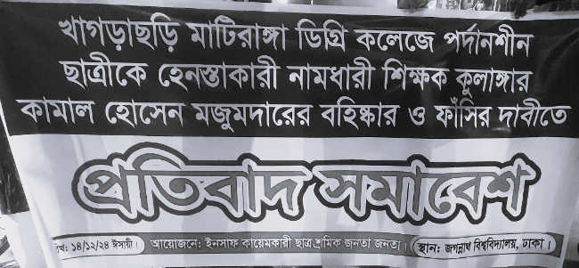 খাগড়াছড়িতে পর্দানশীন ছাত্রীকে হেনস্তাকারী নামধারী শিক্ষক কামাল মজুমদারের বহিষ্কার ও ফাঁসির দাবীতে প্রতিবাদ সমাবেশ