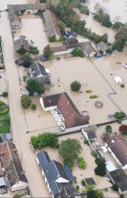 ফ্রান্সের বিস্তীর্ণ এলাকাজুড়ে বন্যা। পানিতে ভাসছে অসংখ্য বাড়ি-ঘর।