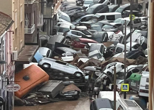 স্পেনে আরও ভয়ানক আকার ধারণ করেছে বন্যা। তীব্র স্রোতে ভেসে যাচ্ছে রাস্তা-ঘাট, গাড়ি।