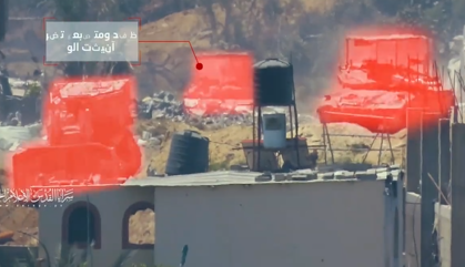 পূর্ব রাফাহ'র আল তানুর এরিয়ায়, ১টি ইসরাইলি সামরিক বুলডোজার'কে আল ইয়াসিন-১০৫" শেল দ্বারা টার্গেট করেছে আল-কাসসাম ব্রিগেড যোদ্ধারা।