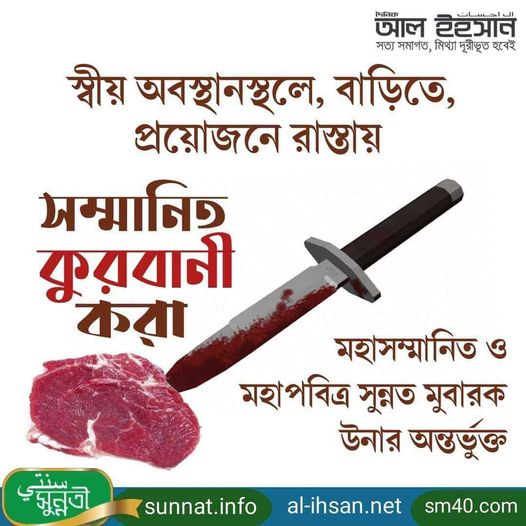 অর্থ: “হযরত ফযল ইবনে আব্বাস রদ্বিয়াল্লাহু তা‘য়ালা আনহু উনার থেকে বর্ণিত। নিশ্চয়ই নূরে মুজাসসাম হাবীবুল্লাহ হুযূর পাক ছল্লাল্লাহু আলাইহি ওয়া সাল্লাম তিনি সম্মানিত ও পবিত্র জমরাতুল ‘আক্বাবাহ্ শরীফ উনার নিকট মহাসম্মানিত ও মহাপবিত্র কুরবানী মুবারক করেন। অতঃপর তিনি ইরশাদ মুবারক করেন, আমি এখা বাকি অংশ পড়ুন...