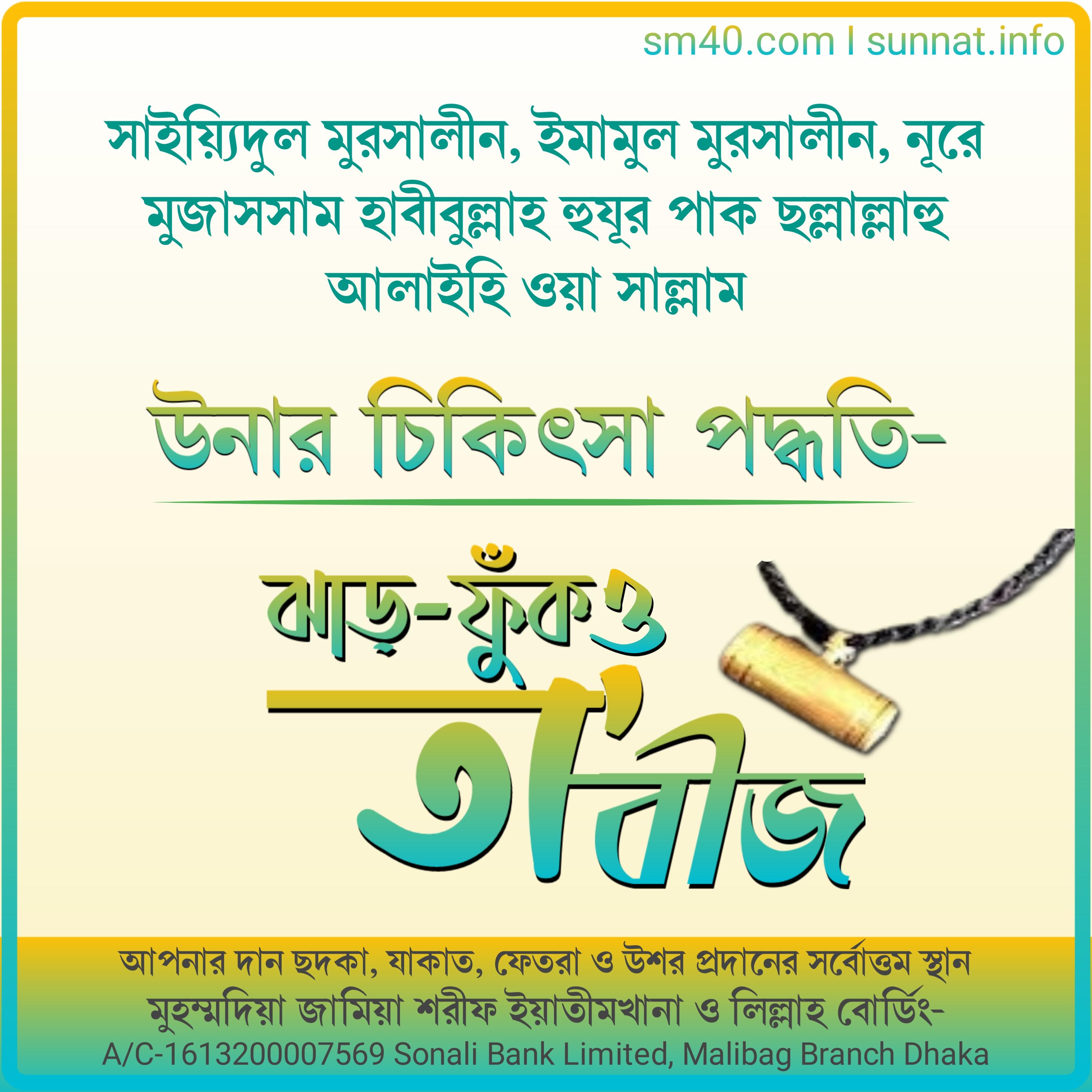 অর্থ: কোন বান্দা রোগাক্রান্ত হলে মহান আল্লাহ পাক তিনিই তাকে শিফা (আরোগ্য) দান করেন। (পবিত্র সূরা শুয়ারা শরীফ: পবিত্র আয়াত শরীফ-৮০)