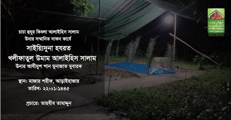 বাদ ইশা পবিত্র মিলাদ শরীফ ও তওবা মুবারক এবং মকবুল মুনাজাত শরীফ বাদ কুল কায়িনাতের সকলের উদ্দেশ্যে নসীহত মুবারক করেন সাইয়্যিদুনা হযরত সুলত্বানুন নাছীর আলাইহিস সালাম তিনি।