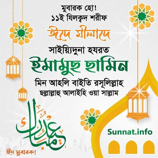 সাইয়্যিদুনা হযরত ইমামুস সাবি’ আলাইহিস সালাম তিনি বর্ণনা করেন, আমি আমার কুনিয়াত মুবারক হযরত ইমামুছ ছামিন আলাইহিস সালাম উনাকে দিয়েছি। উনার মুবারক নাম উনার পিতা ‘মামুনুর রিদ্বা’ রেখেছিলেন এবং উনাকে বেলায়েত পদেরও ওসিয়ত করেছিলেন। ত বাকি অংশ পড়ুন...