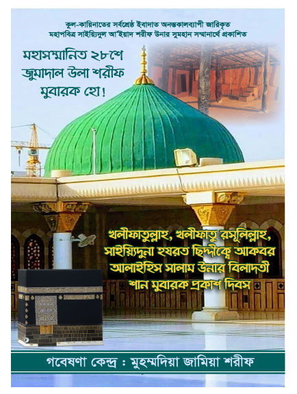 সব প্রশংসা মুবারক খালিক্ব মালিক রব মহান আল্লাহ পাক উনার জন্য; যিনি সকল সার্বভৌম ক্ষমতার মালিক। সাইয়্যিদুল মুরসালীন, ইমামুল মুরসালীন, নবী আলাইহিমুস সালাম উনাদের নবী, রসূল আলাইহিমুস সালাম উনাদের রসূল, নূরে মুজাসসাম, হাবীবুল্লাহ হুযূর পাক ছল্লাল্লাহু আলাইহি ওয়া সাল্লাম উনার প্রতি অফুরন্ত দুরূদ শরীফ ও সালাম মুবারক।
