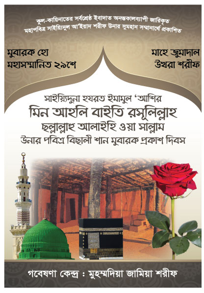 রহমাতুল্লিল ‘আলামীন, ছাহিবু সাইয়্যিদি সাইয়্যিদিল আ’ইয়াদ শরীফ, ইমামুল আইম্মাহ্, মুজাদ্দিদুয যামান, কুতুবুল আলম, মুহইউস সুন্নাহ, মাহিউল বিদয়াহ, গাউছুল আ’যম, আযীযুয যামান, ক্বইউমুয যামান, আল জাব্বারিউল আউওয়াল, আল ক্বউইউল আউওয়াল, আস সাফফাহ, হাবীবুল্লাহ, আহলু বাইতি রসূলিল্লাহ ছল্লাল্লাহু আলাইহি ওয়া সাল্লাম, মাওলানা মামদূহ মুর্শিদ ক্বিবলা সাইয়্যিদুনা হযরত সুলত্বানুন নাছীর আলাইহিস সালাম তিনি বলেন, মহান আল্লাহ পাক তিনি ইরশাদ মুবারক করেন, “আমার সম্মানিত হাবীব ছল্লাল্লাহু আলাইহি ওয়া সাল্লাম! আমি আপনাকে প্রেরণ করেছি হাজির-নাযির, সু বাকি অংশ পড়ুন...