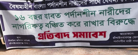 এনআইডিতে (জাতীয় পরিচয়পত্র) মুখচ্ছবি বাদ দিয়ে ফিঙ্গারপ্রিন্ট সংযুক্তির দাবিতে রাজশাহী জেলায় সংবাদ সম্মেলন করেছেন দেশের পর্দানশীন নারীরা।