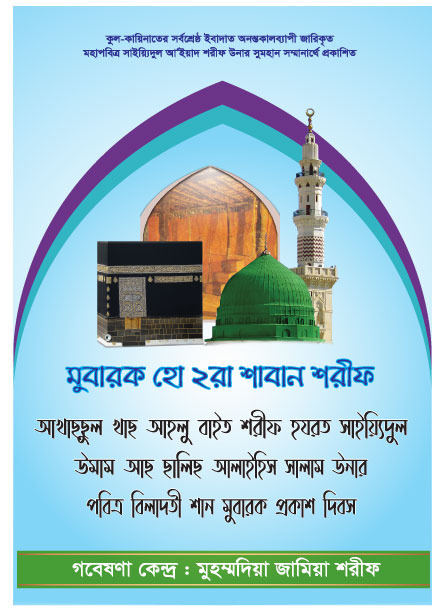 সব প্রশংসা মুবারক খালিক্ব মালিক রব মহান আল্লাহ পাক উনার জন্য; যিনি সকল সার্বভৌম ক্ষমতার মালিক। সাইয়্যিদুল মুরসালীন, ইমামুল মুরসালীন, নবী আলাইহিমুস সালাম উনাদের নবী, রসূল আলাইহিমুস সালাম উনাদের রসূল, নূরে মুজাসসাম, হাবীবুল্লাহ হুযূর পাক ছল্লাল্লাহু আলাইহি ওয়া সাল্লাম উনার প্রতি অফুরন্ত দুরূদ শরীফ ও সালাম মুবারক।