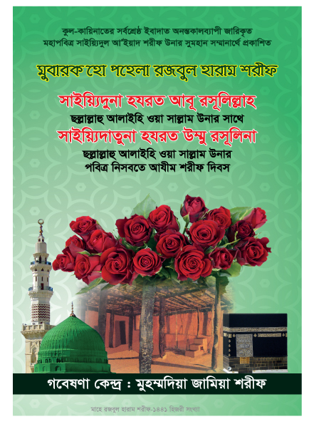 সব প্রশংসা মুবারক খালিক্ব মালিক রব মহান আল্লাহ পাক উনার জন্য; যিনি সকল সার্বভৌম ক্ষমতার মালিক। সাইয়্যিদুল মুরসালীন, ইমামুল মুরসালীন, নবী আলাইহিমুস সালাম উনাদের নবী, রসূল আলাইহিমুস সালাম উনাদের রসূল, নূরে মুজাসসাম, হাবীবুল্লাহ হুযূর পাক ছল্লাল্লাহু আলাইহি ওয়া সাল্লাম উনার প্রতি অফুরন্ত দুরূদ শরীফ ও সালাম মুবারক।