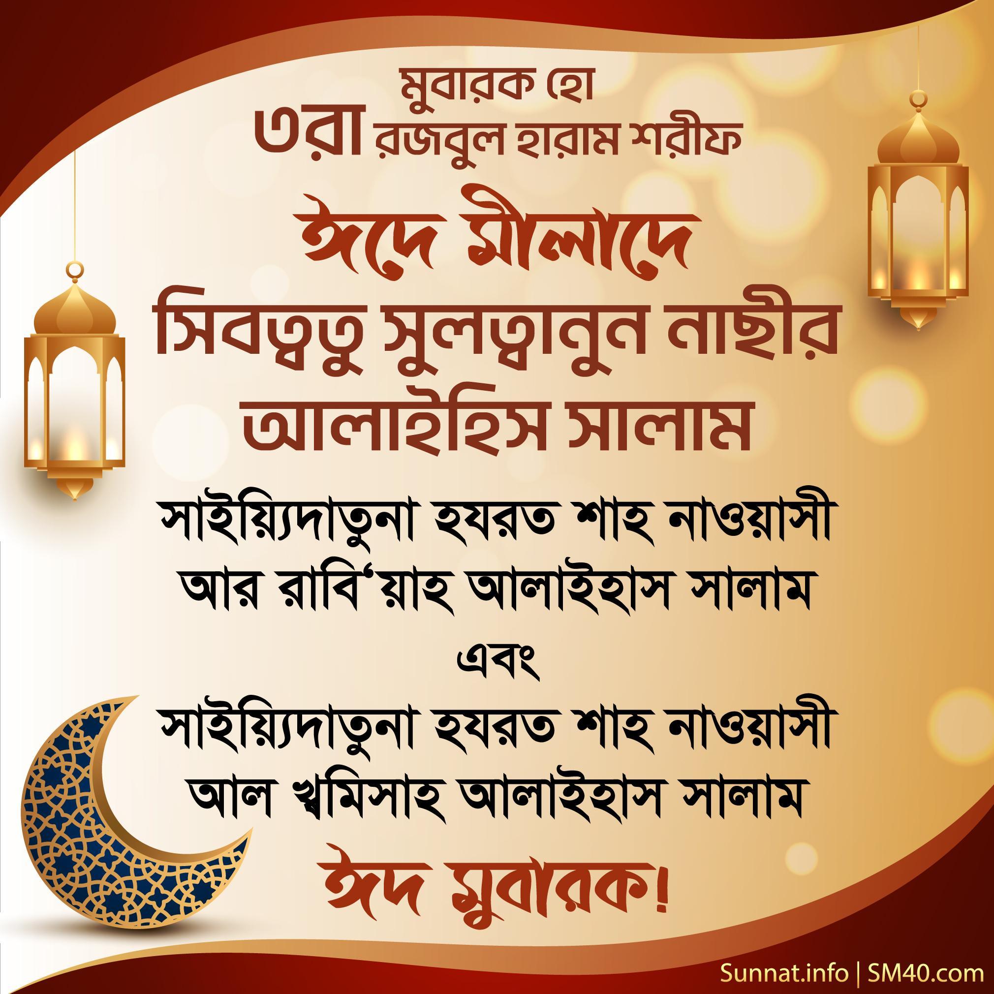 আহলু বাইতি রসূলিল্লাহ ছল্লাল্লাহু আলাইহি ওয়া সাল্লাম, সিবত্বতু সুলত্বনিন নাছীর আলাইহিস সালাম, জান্নাতী মেহমান, সাইয়্যিদাতুল উমাম সাইয়্যিদাতুনা হযরত শাহ নাওয়াসী আর রবি‘আহ্ আলাইহাস সালাম তিনি এবং আহলু বাইতি রসূলিল্লাহ ছল্লাল্লাহু আলাইহি ওয়া সাল্লাম, সিবত্বতু সুলত্বনিন নাছীর আলাইহিস সালাম, জান্নাতী মেহমান, সাইয়্যিদাতুল উমাম সাইয়্যিদাতুনা হযরত শাহ নাওয়াসী আল খ্বামিসাহ্ আলাইহাস সালাম তিনি অর্থাৎ উনারা হচ্ছেন সাইয়্যিদুল মুরসালীন, ইমামুল মুরসালীন, খ্বাতামুন নাবিয়্যীন, নূরে মুজাসসাম হাবীবুল্লাহ হুযূর পাক ছল্লাল্লাহু আল বাকি অংশ পড়ুন...