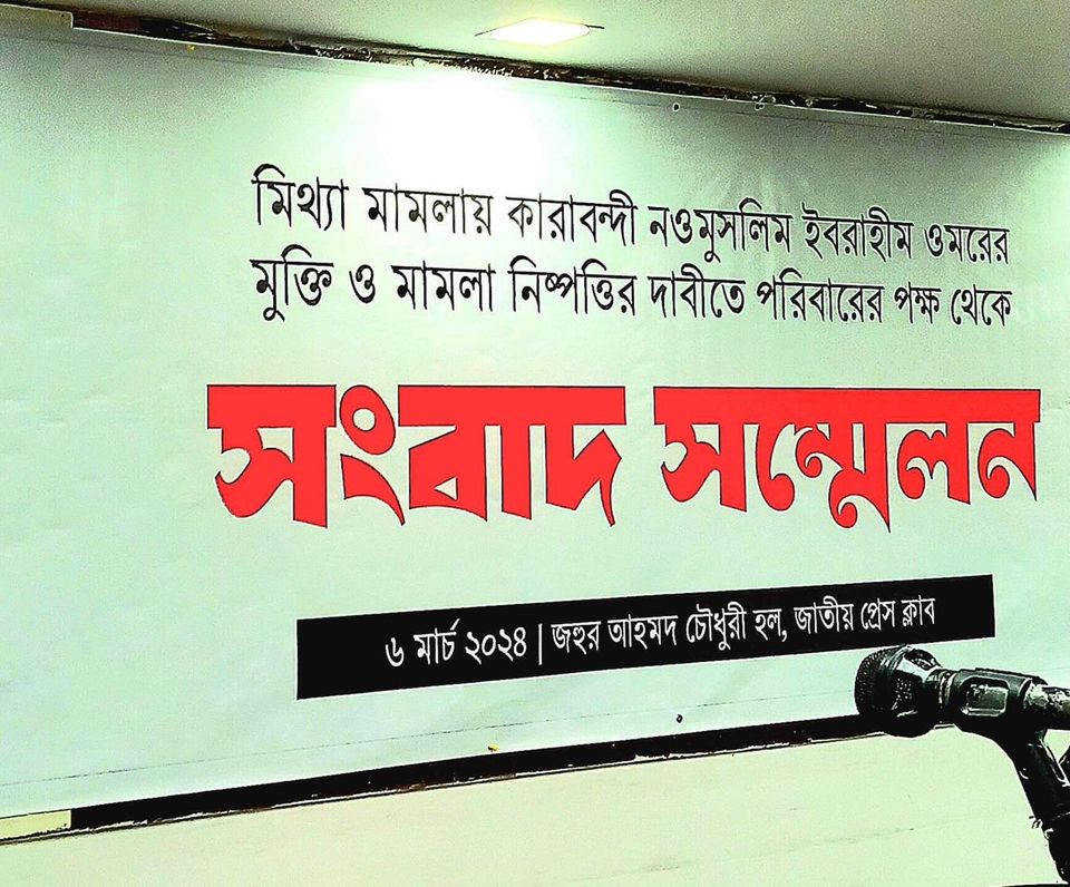 গতকাল ইয়াওমুল আরবিয়া (বুধবার) রাজধানীর জাতীয় প্রেসক্লাবে সংবাদ সম্মেলনের আয়োজন করে ভুক্তভোগী পরিবার। সংবাদ সম্মেলনের বক্তব্য রাখেন জান্নাতুল ইসলাম স্নেহা নামক নওমুসলিম নারী। তিনি তার স্বামী নওমুসলিম ইব্রাহিম ওমরের বিরুদ্ধে মিথ্যা মামলা প্রত্যাহারপূর্বক মুক্তি দাবী করেন।